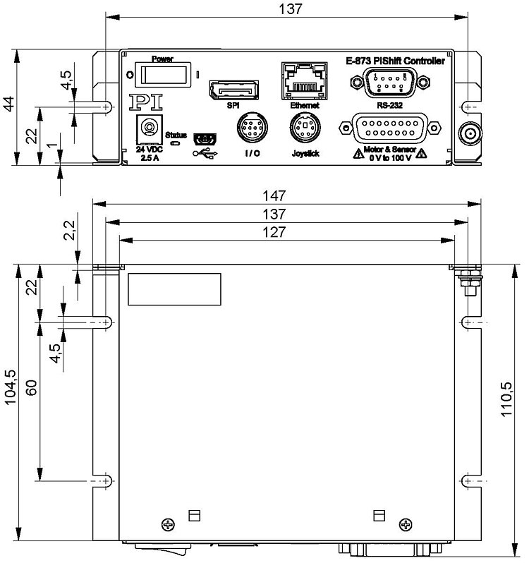 Powerful macro command language. Nonvolatile macro storage, e.g., for stand-alone operation with autostart macro. Data recorder. ID chip detection for fast startup. PID controller, parameter changing during operation. Extensive software support, e.g., for NI LabVIEW, C, C++, MATLAB, Python. PIMikroMove user software.
