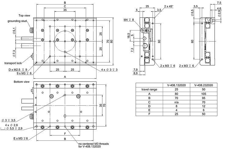 | Positioning | V-408.132020 | V-408.232020 | Tolerance |