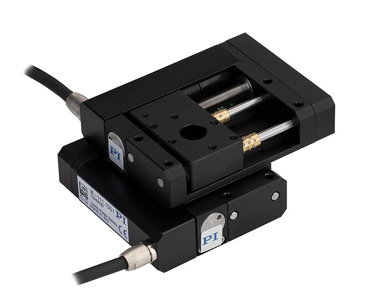 Compact linear stage; DC gear motor; 25 mm travel range, 20 N load capacity, 1.5 mm/s maximum velocity; fine-threaded spindle; incremental rotary encoder, 2048 cts./rev. resolution; 0.5 cable length