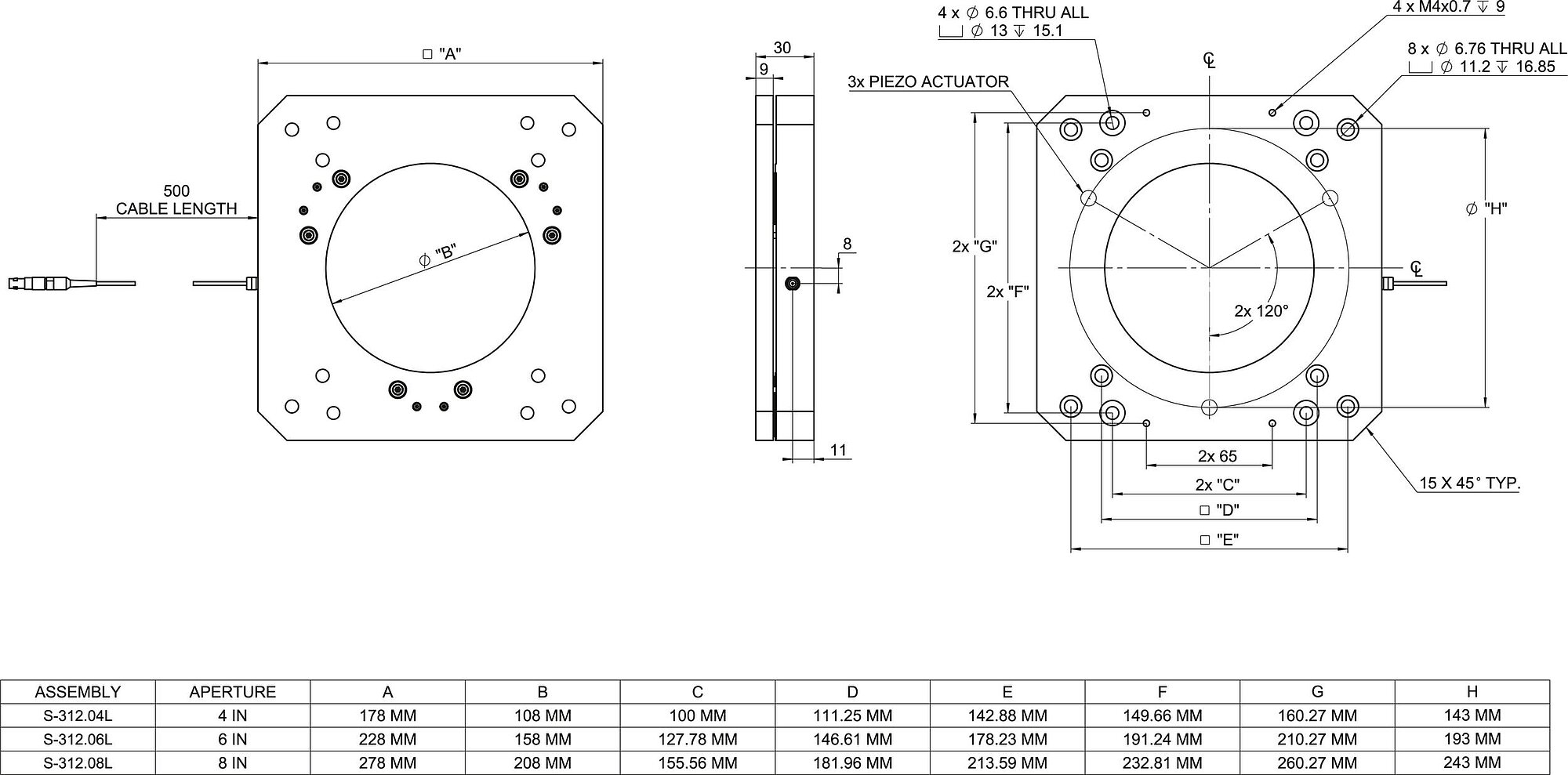 The S-312 family includes five clear-aperture sizes: