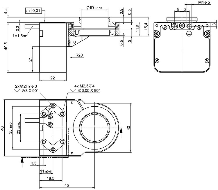 | Integrated sensor | Capacitive, direct position measuring | Capacitive, direct position measuring | Capacitive, direct position measuring | |