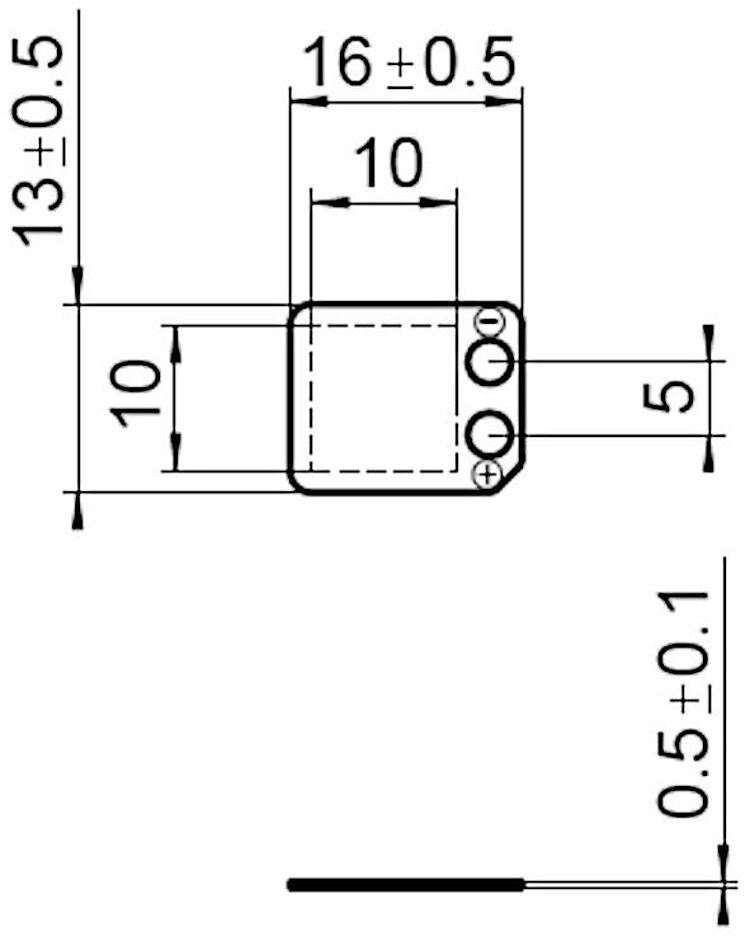 DuraAct patch transducer; DuraAct piezo actuator drive; 13 mm × 16 mm × 0.5 mm (B × L × TH); solderable contacts