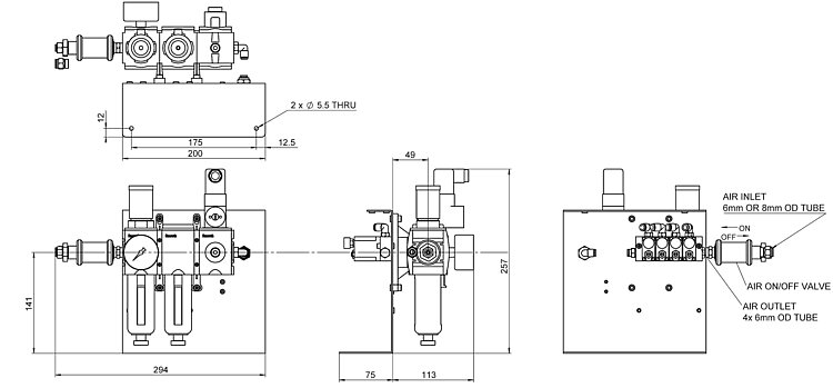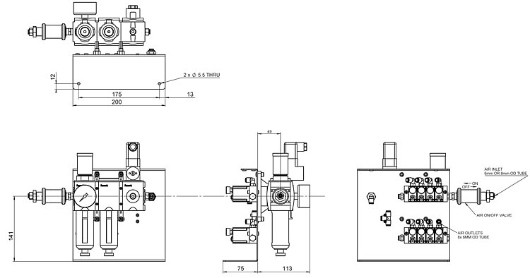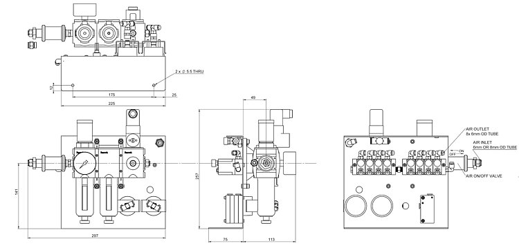 - Pressure regulation - the modules include a pressure regulator with manometer for easy adjustment of the air supply.