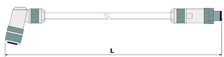 Power supply cable for hexapods, drag chain compatible, M12 m/f angled, 7.5 m
