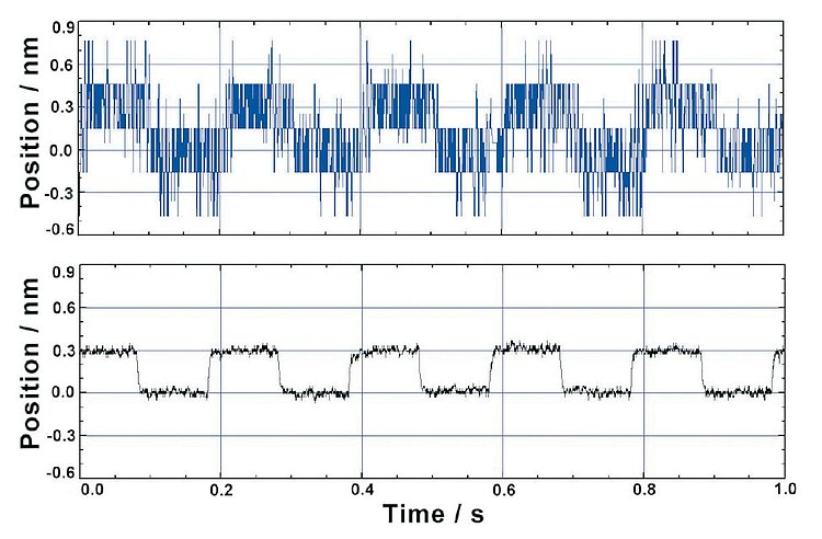 Capacitive sensors achieve resolutions into the picometer range over shorter distances. The theoretical measuring resolution is unlimited. In practice, scatter radiation, geometrical effects, and the measuring electronics noise influence the achievable accuracy. In conjunction with the E-509.C1A electronics, the effective noise factor of the D-100.00 sensors (100 µm) is 0.02 nm/√Hz. Corresponds for example, to a resolution of 0.2 nm with 100 Hz bandwidth. The jumper-adjustable bandwidth of the electronics is up to 3 kHz.
