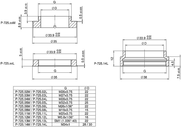 P-725.xxM • P-725.xxL • P-725.xxS Thread Adapters for PIFOC Focus Scanners