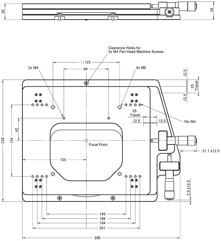 - Travel range 25 mm × 25 mm